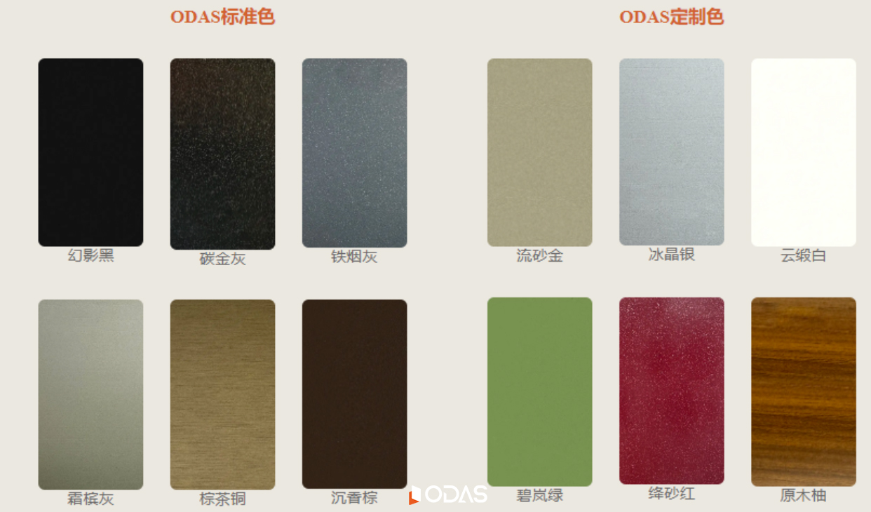 欧大师门窗产品体系涵盖门窗、幕墙、阳光房等,能够为建筑外立面提供完整的解决方案。根据家装流程风格趋势精选的12款花色,能够匹配新中式、简约风、奶油风等多种风格,不同客户的需求和喜好。