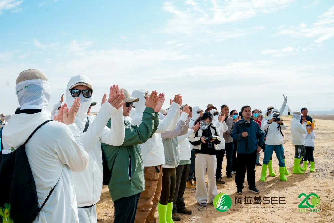 此次活动在阿拉善SEE乌兰布和生态教育示范基地隆重举行,来自全国各地的阿拉善SEE企业家会员及亲属、媒体、志愿者百余人共同参与,挥洒汗水,用实际行动为这片土地播种下绿色希望。