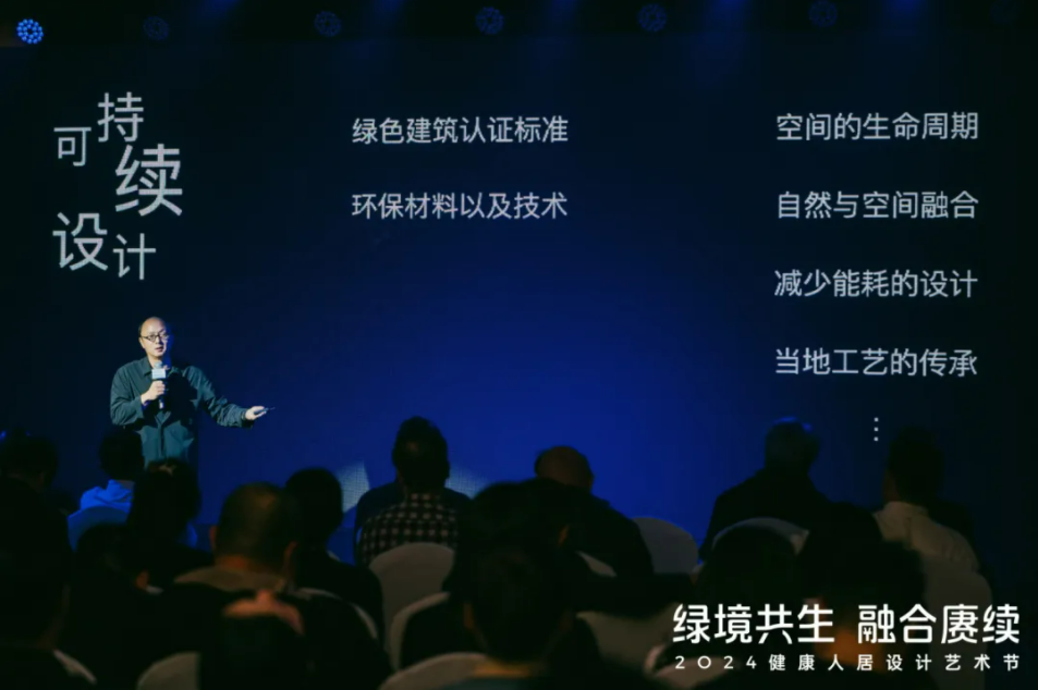 “可持续设计需要更广的视野与思考。”建筑师郑东贤先生以此为引,分享了他对可持续设计的独特理解。郑东贤认为,设计师需要回归原点,重新审视“发展”在可持续发展中的真正含义。他提出,可持续设计不仅仅是选用环保材料和减少能耗,更重要的是延长空间的生命周期,将建筑与自然和谐相融。