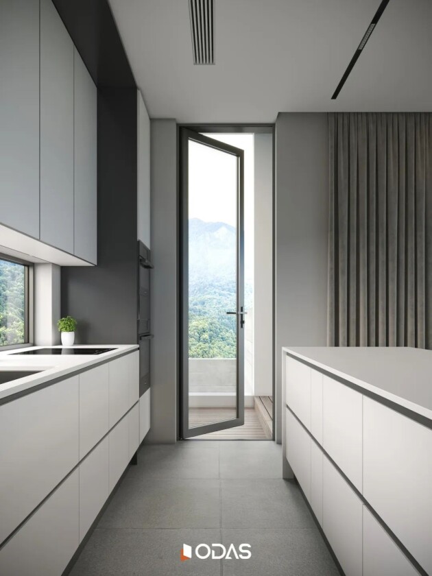 细节打磨到恰到好处,方能拥有更多游刃有余的空间。面对室外复杂天气环境,对平开门有着更高的性能要求。厨房侧门采用欧大师揽光85外平开门,打通室内外链接,营造兼具实用主义和自然美学的家居生活空间。