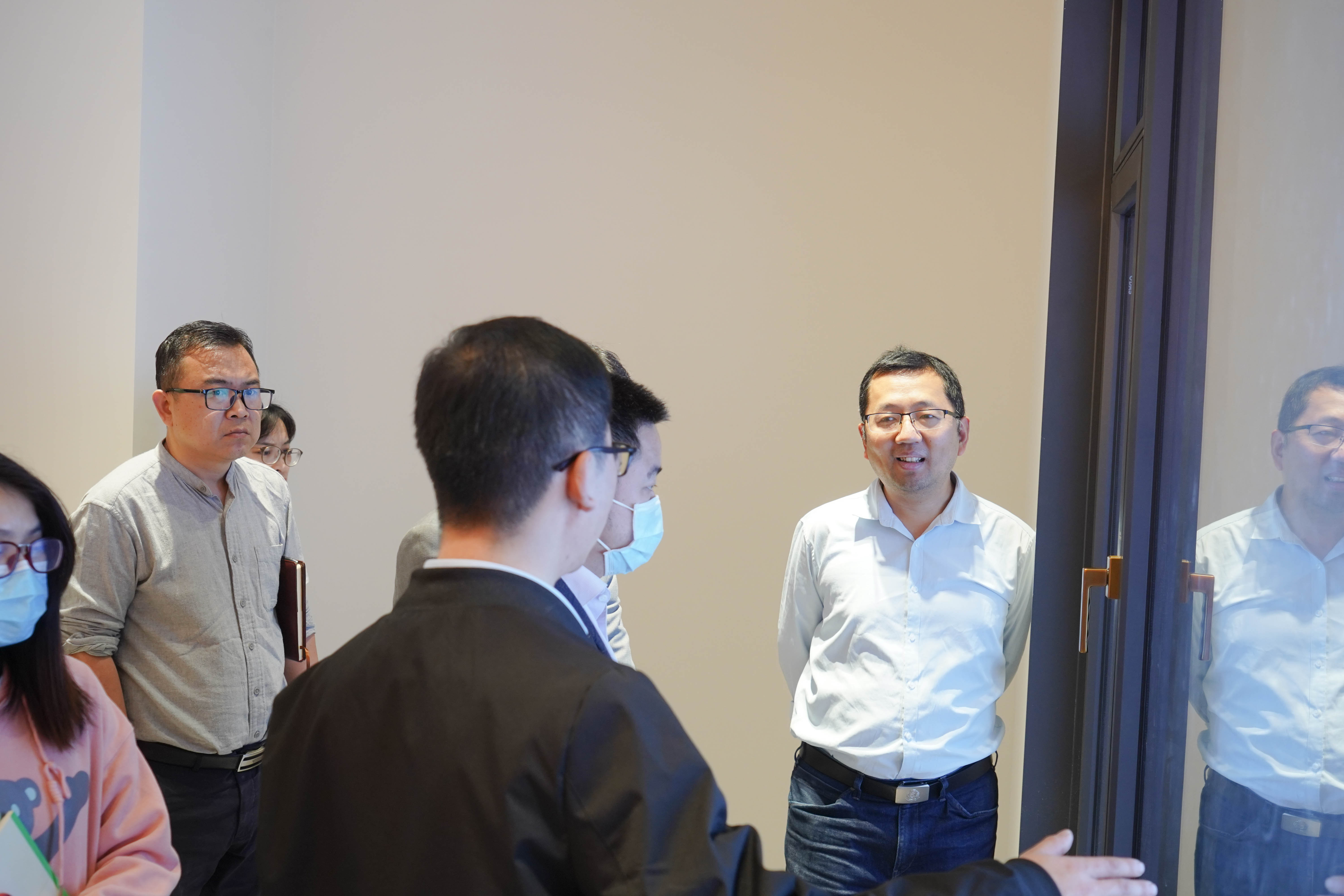 3月4日,市工信局数字化车间改造项目专家组一行来到欧大师隔热门窗总部对公司的数字化工厂建设情况进行实地参观考察。总经理助理徐总、副总经理郭总和人力资源总监张总全程参与接待交流。